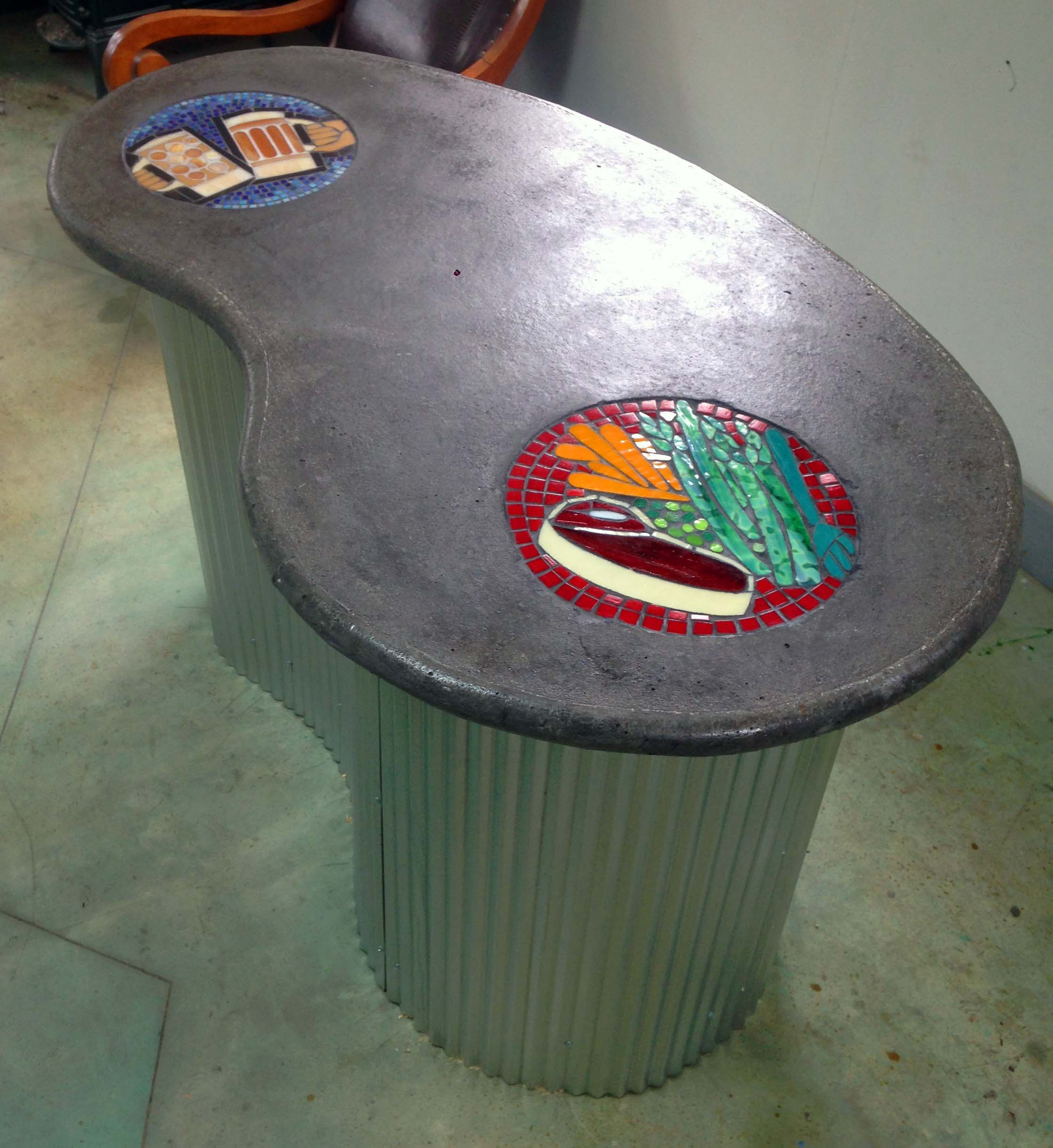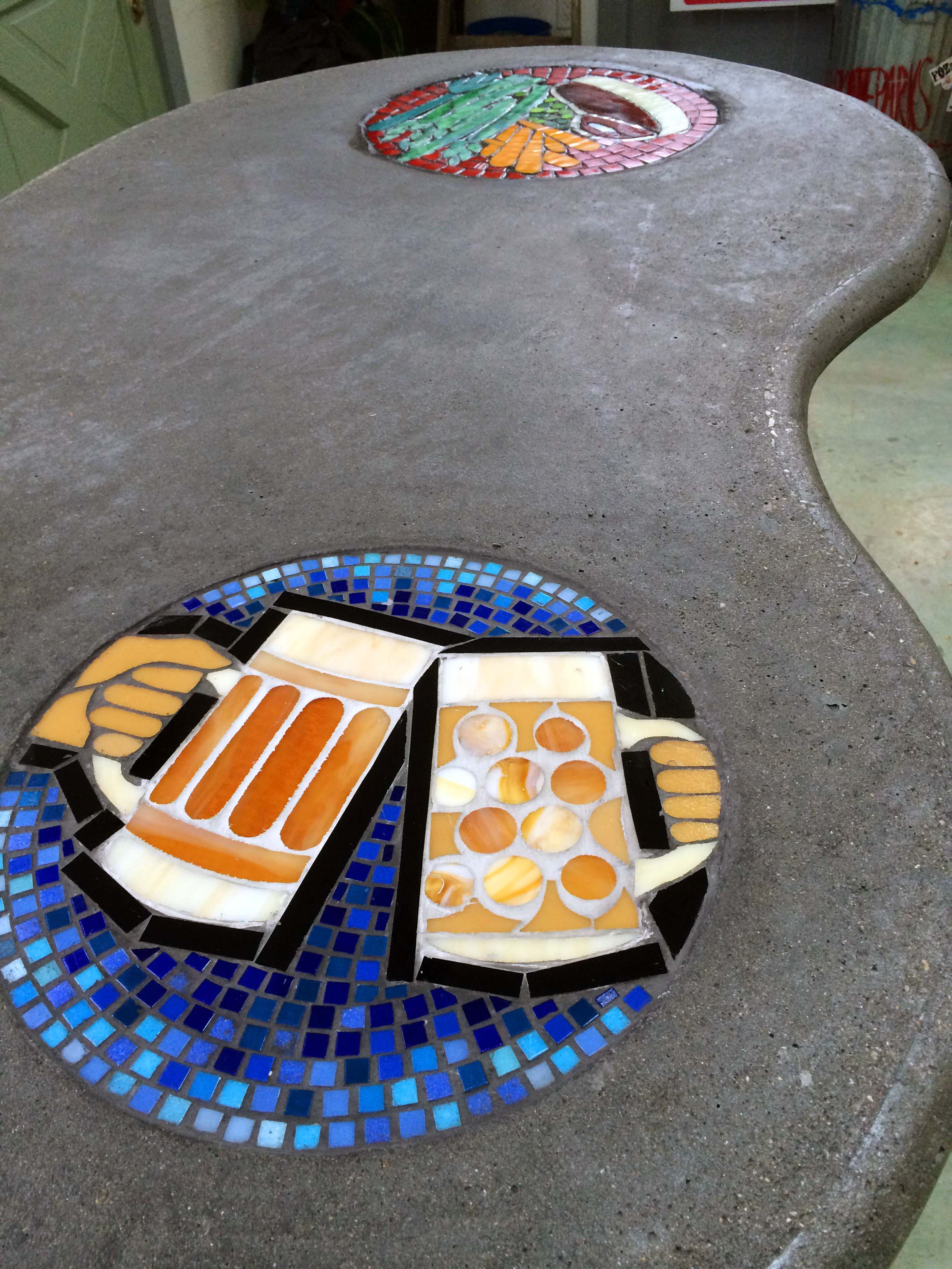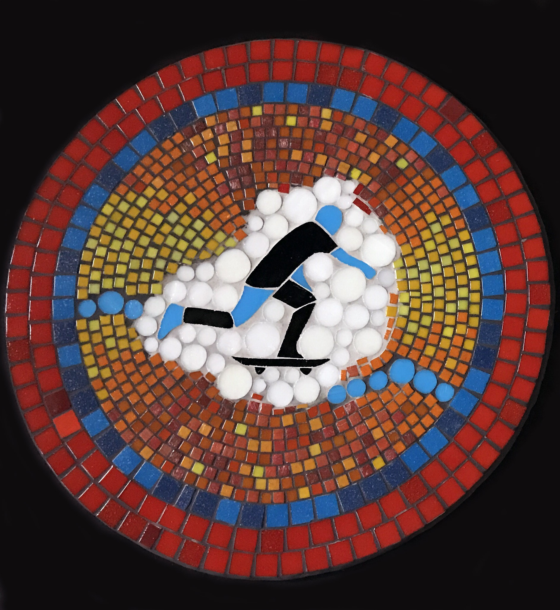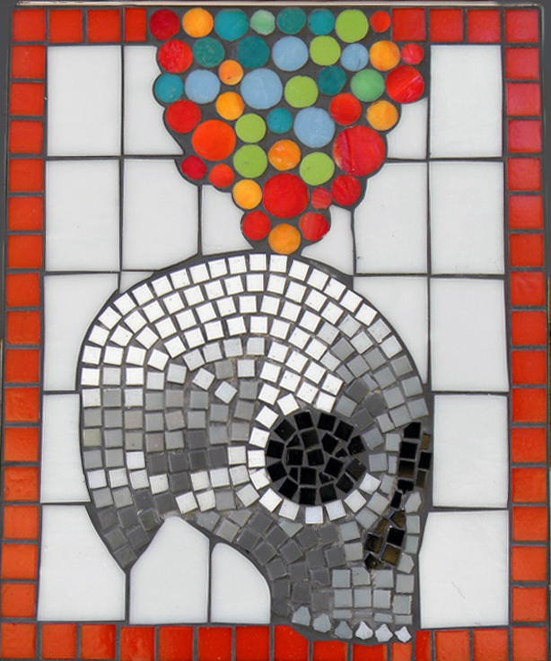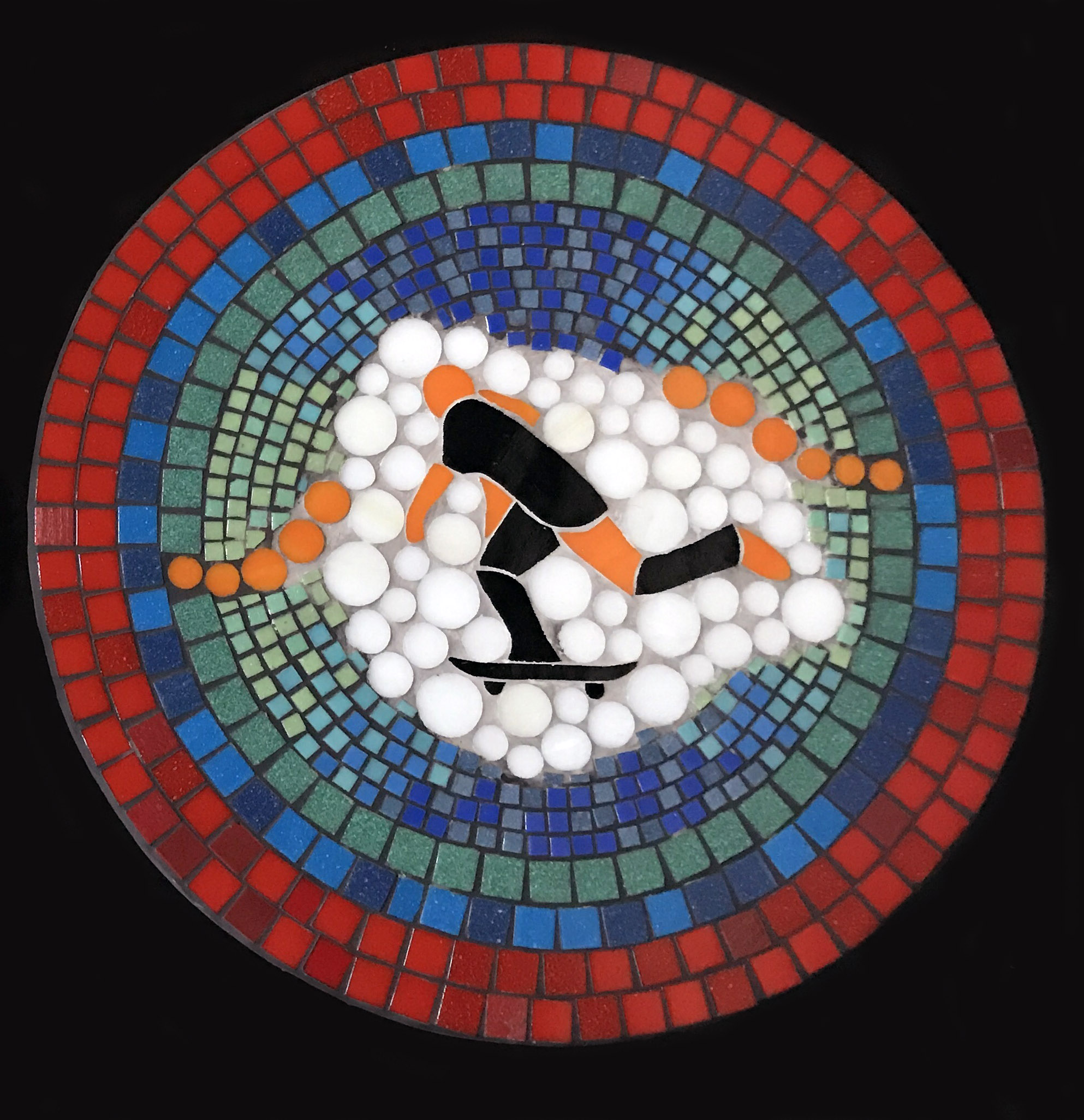 Mosaic is an ancient medium that is historically connected to stained glass. My mosaics are mainly constructed with cut stained glass and glass mosaic tile. I began working in mosaics in 2013 when I realized how concrete and mosaics made wonderful partners in skateparks.